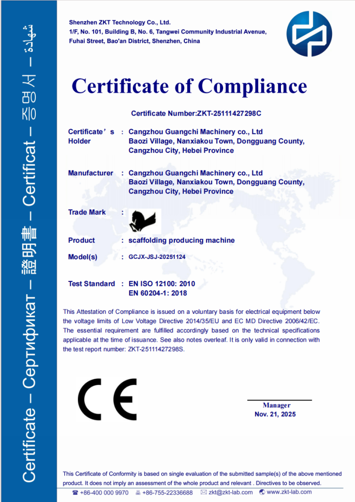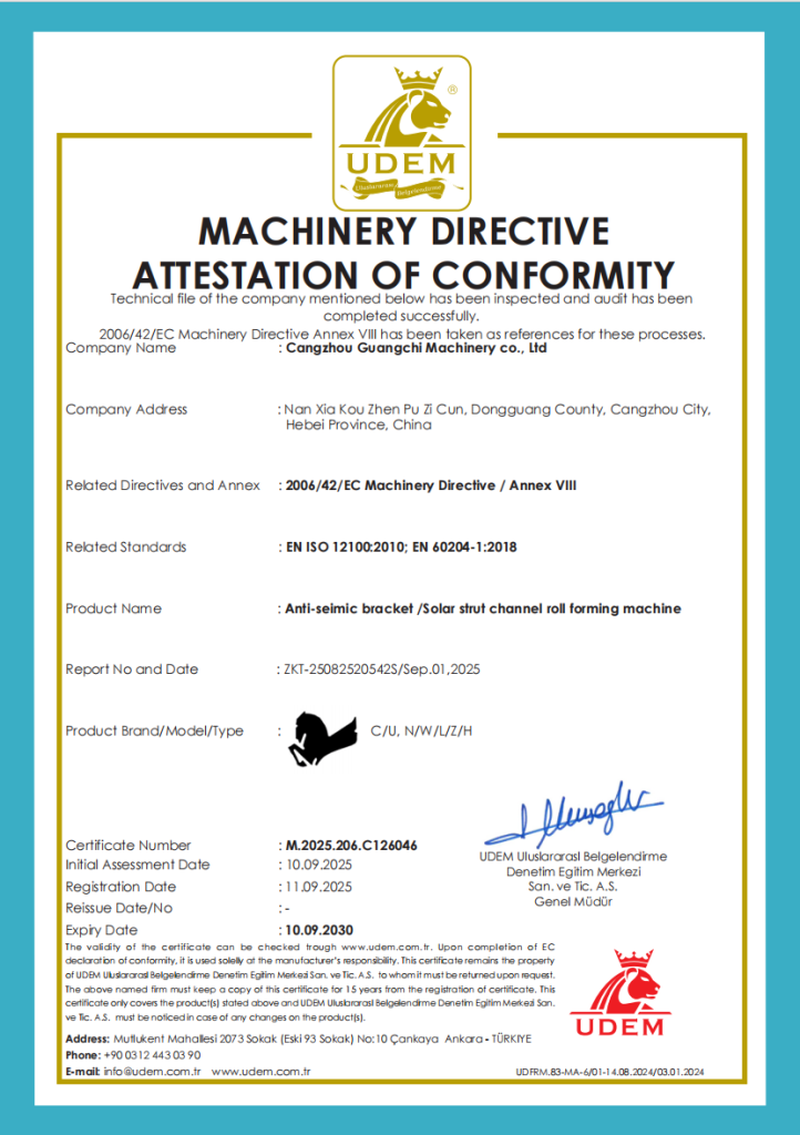 ООО Цанчжоу Гуанчи Машиностроительная не только занимается разработкой и производством различных типов машин холодной формовки, но и является одним из передовых китайских брендов оборудования для обработки рулонов, основная продукция: высокоскоростная машина для формовки ограждений, машина для ремонта ограждений; стеллажное оборудование, машина для производства труб для теплиц, пазовая машина, термоусадочная машина, водосточная машина, фотоэлектрический кронштейн, прогонная машина, машина для цветной стальной плитки, высокоскоростная машина для трапециевидных листов, машина для глазурованной плитки, машина для балок перекрытия, продукция высокого качества и низкой цены. Технические характеристики и показатели достигли передового уровня в стране и за рубежом.